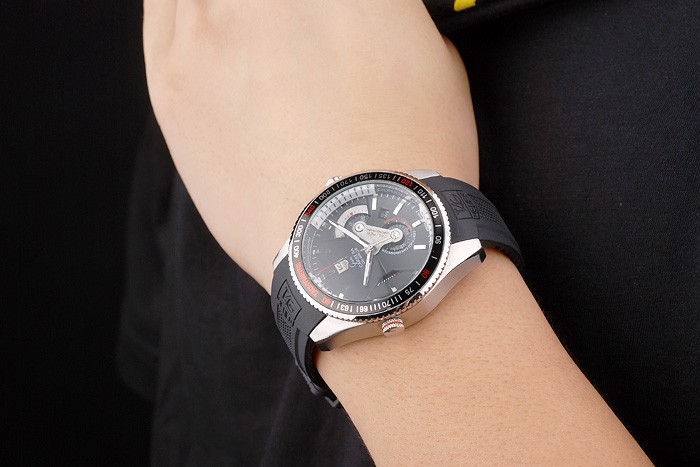 Back: Stainless steel screwed down case back with Tag Heuer Replica engravings Gender: UominiMovement: Quarzo (Batteria) Quality: Giapponese Miyota Color: Nero Case: Brushed stainless steel case Bracelet: Textured black rubber strap with heat embossed Tag Heuer Replica stamp and engraved hook-buckle clasp Bracelet Length: 210 x 22 mm Bezel: Polished stainless steel cutwork bezel with glossy black tachymeter Band Type: Gomma Diameter: 49 x 43 mm Watch Clasp: Flip Clasp Glass: Sapphire Crystal Crown: Polished stainless steel cutwork crown with Tag Heuer Replica logo plus two additional crowns on either side and one on the opposite top corner Case Thickness: 17 mm