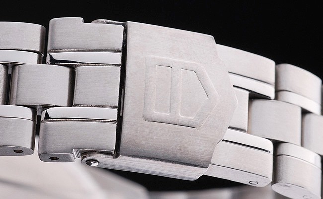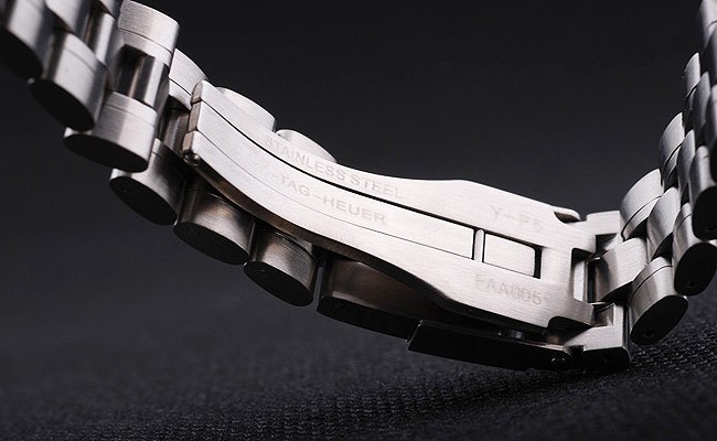 Bracelet: Brushed and polished stainless steel link bracelet with Tag Heuer Replica engraved fold-in clasp