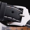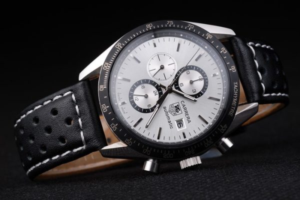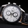Bracelet: Textured white leather strap with heat embossed Monaco stamp and Tag Heuer Replica engraved hook-buckle clasp