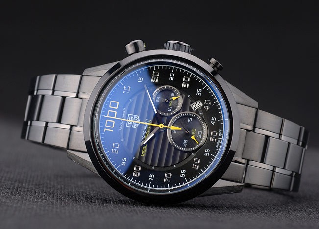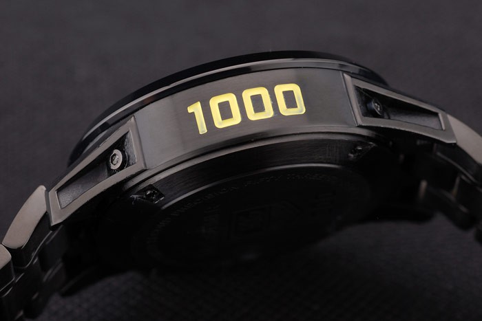 Back: Ion-plated screwed down back with Tag Heuer Replica engravings Gender: UominiMovement: Quarzo (Batteria) Quality: Giapponese Miyota Case: Ion-plated stainless steel case Bracelet: Ion-plated stainless steel link bracelet with Tag Heuer Replica engraving on top and a ceramic fold-over clasp with push release button Bracelet Length: 195 x 22 mm Bezel: Black ceramic bezel Band Type: Acciaio inossidabile placcato a ioni Diameter: 53 x 45 mm Glass: Sapphire Crystal Crown: Ion-plated cutwork crown with Tag Heuer Replica logo and two round push button crowns on either side of it Case Thickness: 17 mm