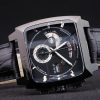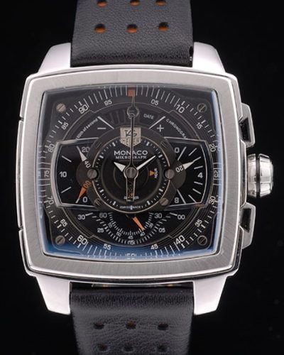 Back: Stainless steel screwed down back with Tag Heuer Replica Monaco engravings Gender: UominiMovement: Quarzo (Batteria) Quality: Giapponese Miyota Color: Nero Case: Ion-plated stainless steel case Bracelet: Black crocodile leather strap with heat embossed Tag Heuer Replica stamp and ion-plated push-release fold-in clasp with Tag Heuer Replica logo on top Bracelet Length: 203 x 22 mm Bezel: Ion-plated bezel with Tag Heuer Replica engraving on bottom corner Band Type: Pelle Diameter: 52 x 43 mm Watch Clasp: Flip Clasp Glass: Sapphire Crystal Crown: Ion-plated cutwork crown with Tag Heuer Replica logo and two rectangular push-button crowns on either side of it Case Thickness: 16 mm