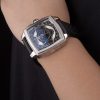 Back: Polished stainless steel screwed down back with Tag Heuer Replica engravings Gender: UominiMovement: Quarzo (Batteria) Quality: Giapponese Miyota Case: Brushed stainless steel case Bracelet: Heat embossed Tag Heuer Replica black perforated leather strap with red stitching in the inside and stainless steel fold-in clasp with push release feature Bracelet Length: 205 x 24 mm Bezel: Brushed stainless steel square bezel Band Type: Pelle Diameter: 55 x 43 mm Glass: Sapphire Crystal Crown: Polished stainless steel cutwork crown with Tag Heuer Replica logo and two long cutwork push button crowns on either side of it Case Thickness: 15 mm