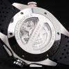 Back: Stainless steel push in back with transparent mechanics revealing centre and Tag Heuer Replica engravings Gender: UominiMovement: Cinetico (Automatico) Quality: Svizzera ETA Color: Bianco Case: Polished stainless steel case Bracelet: Perforated black rubber strap with brushed stainless steel push-button release fold in clasp with Tag Heuer Replica engraving Bracelet Length: 204 x 22 mm Bezel: Brushed stainless steel bezel with black engraved tachymeter Band Type: Gomma Diameter: 50 x 44 mm Watch Clasp: Flip Clasp Glass: Sapphire Crystal Crown: Polished stainless steel cutwork crown with black enamel Tag Heuer Replica logo plus two rectangular push-button crowns on either side and one large crown on the opposite top corner with logo Case Thickness: 17 mm