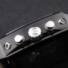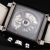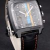 Back: Ion-plated screwed down frame with Monaco engraving and transparent back revealing the inner mechanics Gender: UominiMovement: Cinetico (Automatico) Quality: Svizzera ETA Color: Nero Case: Ion-plated stainless steel case Bracelet: Tag Heuer Replica heat embossed black crocodile leather strap with orange stitching and ion-plated push-button release fold in clasp with Tag Heuer Replica engraving Bracelet Length: 247 x 21 mm Bezel: Ion-plated bezel with Tag Heuer Replica engraving Band Type: Pelle Diameter: 49 x 40 mm Chronograph: Si Watch Clasp: Flip Clasp Glass: Sapphire Crystal Crown: Polished stainless steel cutwork crown with Tag Heuer Replica logo plus two additional crowns on either side