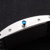 Crown: Polished stainless steel cutwork crown with blue gemstone stud