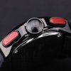 Crown: Ion-plated stainless steel cutwork crown with Tonino Lamborghini Replica logo and two red enamel topped oblong push-button crowns on either side of it