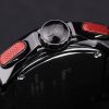 Crown: Ion-plated stainless steel cutwork crown with Tonino Lamborghini Replica logo and two red enamel topped oblong push-button crowns on either side of it