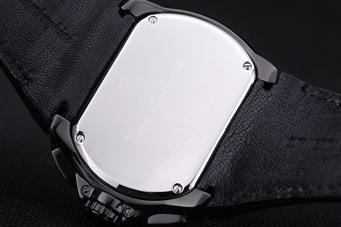 Bracelet: Black leather strap with heat embossed Tonino Lamborghini Replica stamp and Tonino Lamborghini Replica engraved and logo embossed ion-plated fold-in flip-over hook clasp