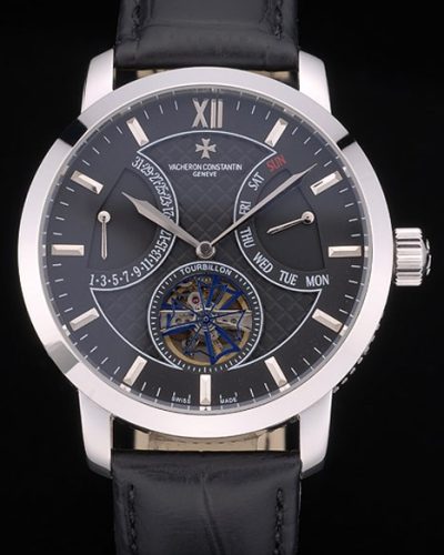 Back: Polished stainless steel screwed down back with transparent mechanics revealing center and Vacheron Constantin Replica engravings Gender: UominiMovement: Cinetico (Automatico) Quality: Svizzera ETA Case: 18k rose-gold plated case Bracelet: Heat embossed Vacheron Constantin Replica and logo black crocodile leather strap with 18k rose-gold plated logo hook-buckle clasp Bracelet Length: 200 x 20 mm Bezel: 18k rose-gold plated bezel Band Type: Pelle di coccodrillo Diameter: 50 x 41 mm Watch Clasp: Buckle Glass: Sapphire Crystal Crown: 18k rose-gold plated cutwork crown with Vacheron logo Case Thickness: 10 mm