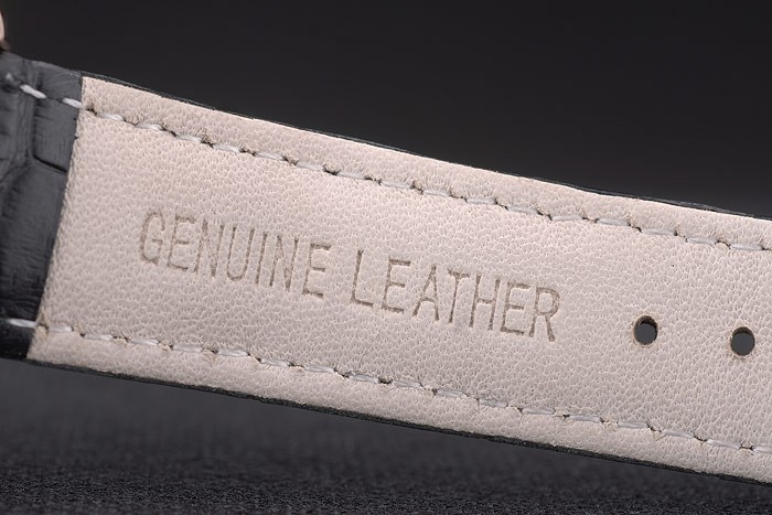 Bracelet: Heat embossed Vacheron Constantin Replica and logo black crocodile leather strap with 18k rose-gold plated logo hook-buckle clasp