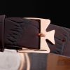 Bracelet: Rich maroon crocodile leather strap with ‘Vacheron Constantin Replica’ inscription and hook buckle clasp