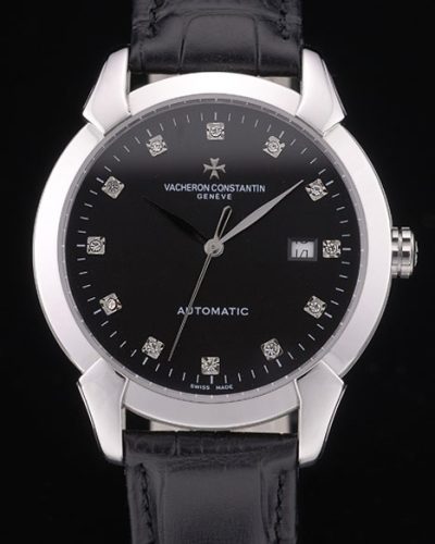 Bracelet: Brown crocodile leather strap with heat embossed Vacheron Constantin Replica stamp and rose-gold plated Vacheron Constantin Replica logo hook-buckle clasp