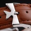 Bracelet: Vacheron Constantin Replica and logo heat embossed tan crocodile leather strap with polished stainless steel logo hook-buckle clasp